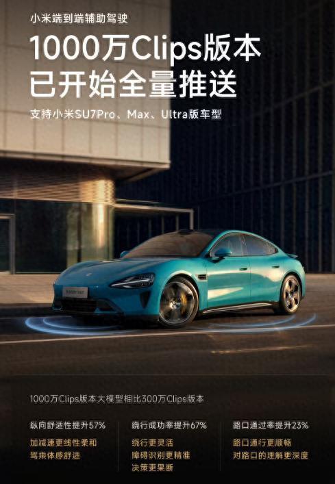 官方介绍称,小米 YU7 车型全系出厂即搭载 1000 万 Clips 版本端到端辅助驾驶。Clips 指的是记录了驾驶行为的视频片段,其中包含由激光雷达、摄像头、毫米波雷达等多种传感器同步记录的多模态数据,长度一般为 30 秒至 1 分钟(「1000 万 Clips」指的是有 1000 万段视频片段)。在 Clips 的数量形成规模后,如达到 1000 万这个量级,「端到端大模型」控车越自然流畅,乘坐感受越像老司机在开车。