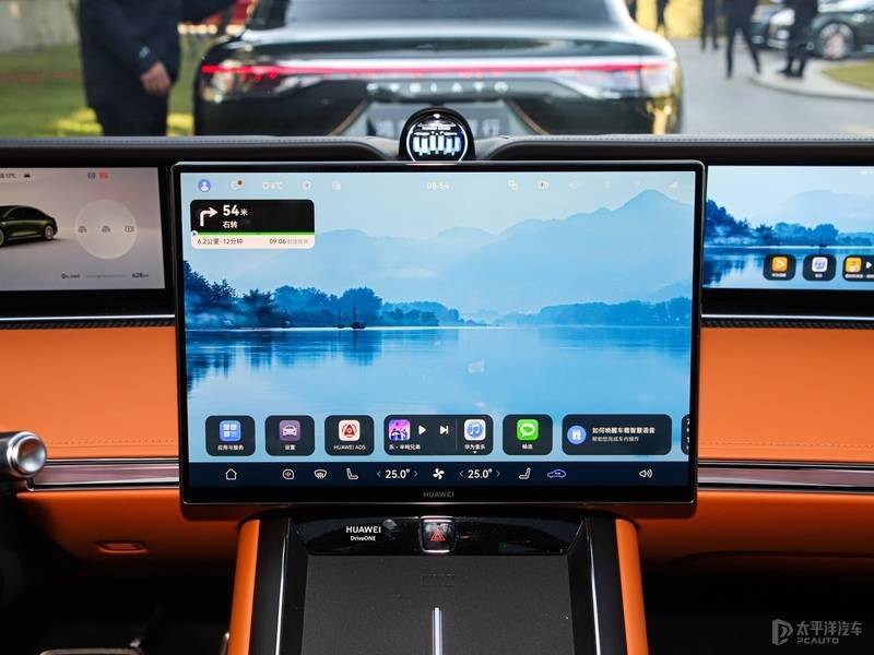 后排新增6.58英寸MagLink Mini控制屏,与智能手机相当,磁吸可拆卸使用,支持调节幕布、音响、灯光、空调、遮阳帘等。MagLink Mini控制屏还支持舱外娱乐互动。还一同新增32英寸升降式投影幕布,搭配华为悦彰音响卓越系列,支持一键观影模式。